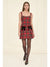 Moon River Sleeveless Plaid Front Button Mini DressSweetheart neckline Sleeveless Button down Back smocking Back zipper Velvet bow tie detail A-line Pleating detail Plaid pattern Lined Mini dress Shell:100%polyester Lining:100%polyester