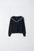 Pure Cashmere NYC Sailor Collar Top with Color Point in Dark Navy