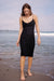 Midi length with an ever-so-subtle, flirty flare at the hem. Slight v-neck, delicate strapping and finished with 2 petite bows.