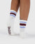Baggu Ribbed Sock - Ivory StripeThey're soft, stretchy, thick and colorful, with a looped footbed for extra comfort.One pairSmall fits US women’s 6–9 ½One Size fits US women’s 6–11Bamboo rayon, poly/nylon elasticMachine washable