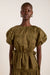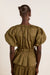 Defined by puff sleeves and a peplum hem, the Hadley Blouse in olive cotton satin is the perfect statement piece. Crafted from 100% organic cotton, the Hadley features an adjustable waist tie that allows you to customise the fit and accentuate your waist.